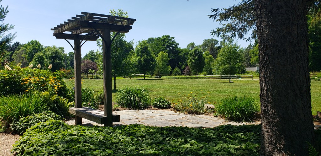 We wanted to enjoy some of the sunshine that has been present in Erie, PA the last few weeks, so rather than checking out more trails like we did at the Girard Waterworks Park, we headed to a wide open space. We decided to wander around the Goodell Gardens & Homestead in Edinboro, PA. We not only got sun and a nice breeze, but the sights, paths, flowers, and trees provided for an excellent afternoon walk.