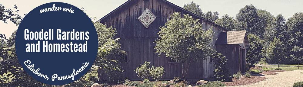 We wanted to enjoy some of the sunshine that has been present in Erie, PA the last few weeks, so rather than checking out more trails like we did at the Girard Waterworks Park, we headed to a wide open space. We decided to wander around the Goodell Gardens & Homestead in Edinboro, PA. We not only got sun and a nice breeze, but the sights, paths, flowers, and trees provided for an excellent afternoon walk.
