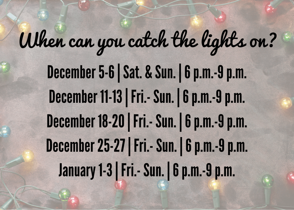 This event begins on Presque Isle, and the hours are from 6-9PM on Friday, Saturday, and Sunday until January 1st-3rd weekend. As you enter the park there will be signs, and individuals can use the right-hand lane for the distribution of programs as well as accepting donations at the 2nd parking lot. In addition, the 4th parking lot will have hot cocoa for individuals, and you should also use the right-hand lane. This is a popular event and the traffic can get pretty backed up, so if you don’t want either of these items you can stay in the left lane and continue to drive. Also, be sure to turn in to 95.5 FM for the holiday music.