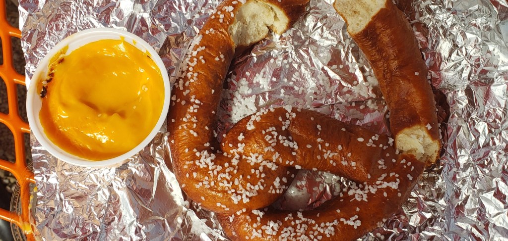 Ice cream isn’t the only thing Mr. Shivers serves, as you can get anything from fresh cut fries and hot dogs to buffalo chicken or a grilled cheese. We love that this stand boasts a menu that’s fit for lunch or dinner, so if you want to enjoy a meal and then go back and get some ice cream for dessert, this may be a great location for you! And we do have to say, the soft pretzel with cheese that we got was super good!