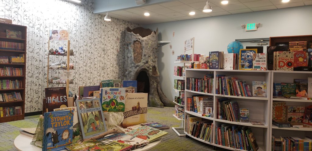 We can’t help but absolutely love the children’s bookstore inside of Pressed. It is decorated to perfection, and includes an adorable hollow tree that the kids can sit inside. They have a wide selection of books for kids of all ages, babies through teenagers. Fair warning, we can’t walk into this room without leaving with some sort of treat for the kids; whether it’s a book, puzzle, or soft and lovable plushie, we always find something either educational or adorable at Pressed.