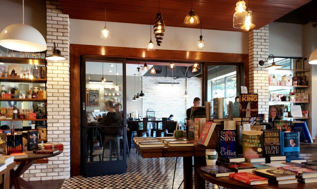 This bookstore and coffee shop is set up as two separate locations that are connected by a set of sliding doors inside. We love that you can browse the bookstore and then go hang out in the coffee shop without having to step foot outside.