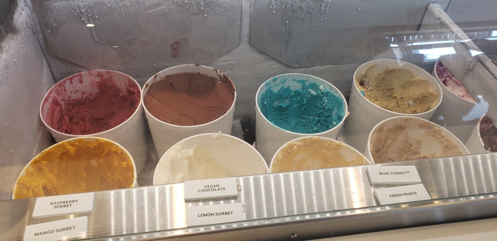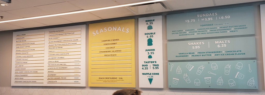 Eat ice cream! Here’s how your visit should go: If you enter from the outside, you will walk straight forward to get into line; which is usually pretty long considering this is a very popular ice cream place! Once in line, you can gaze at the many, many ice cream flavors you have to choose from.