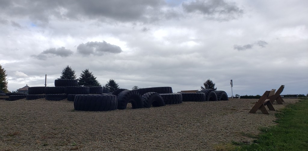 There are several other activities that the kids will love (and some adults will love, too)! The Low Ropes Course was a lot of fun for all of us, as we played on a giant playground and balanced on different obstacles. We even got to climb a small rock wall! The ball zone will be a favorite of anyone who enjoys playing sports; you can try your hand at soccer, basketball, and football. The Game Garden features large wooden games, such as a giant game of connect four called Ducks in a Row. The Tire Fort will test your climbing and balancing skills as you climb from tire to tire and walk across wooden beams.