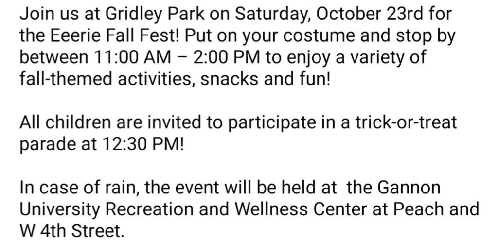 [Editor’s note: Please be aware that we are not affiliated with any of these events in any way. This is true of all of our posts. We simply enjoy wandering around Erie as we know finding what to do in Erie, PA area can be hard.]