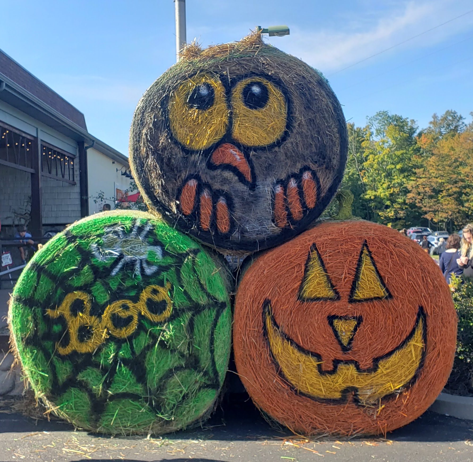 Once you park, head toward the fun! You’ll see tables set up as you head from the parking lot towards the vendors. Once you round the corner, you’ll see decorative hay bails set up for people to take photos in front of. You can choose Halloween themed bails or Minions!