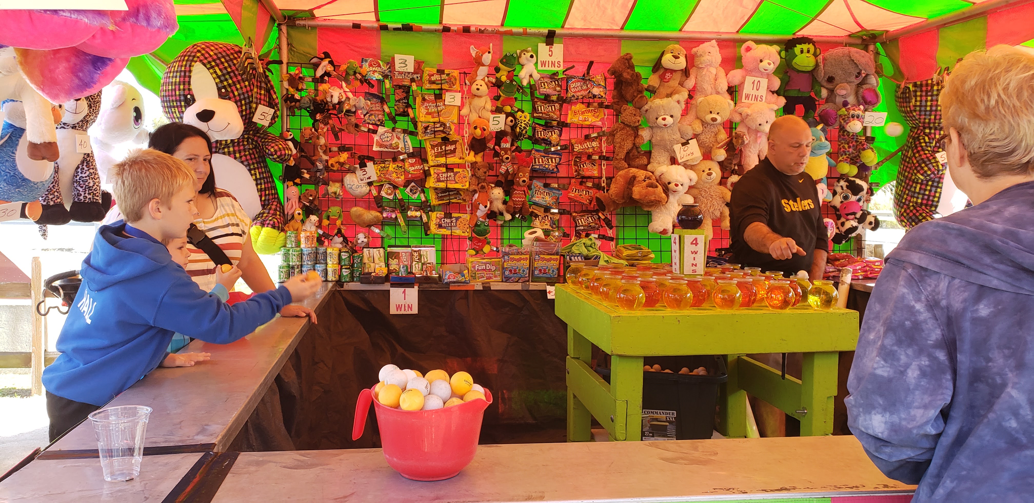 There’s also a carnival game for kids to enjoy! It’s one of those games where you have to throw ping pong balls into bowls, and the amount of balls you get in determines what prize you can choose from. It will cost you $3 or $5 to play, depending on how many balls you want.