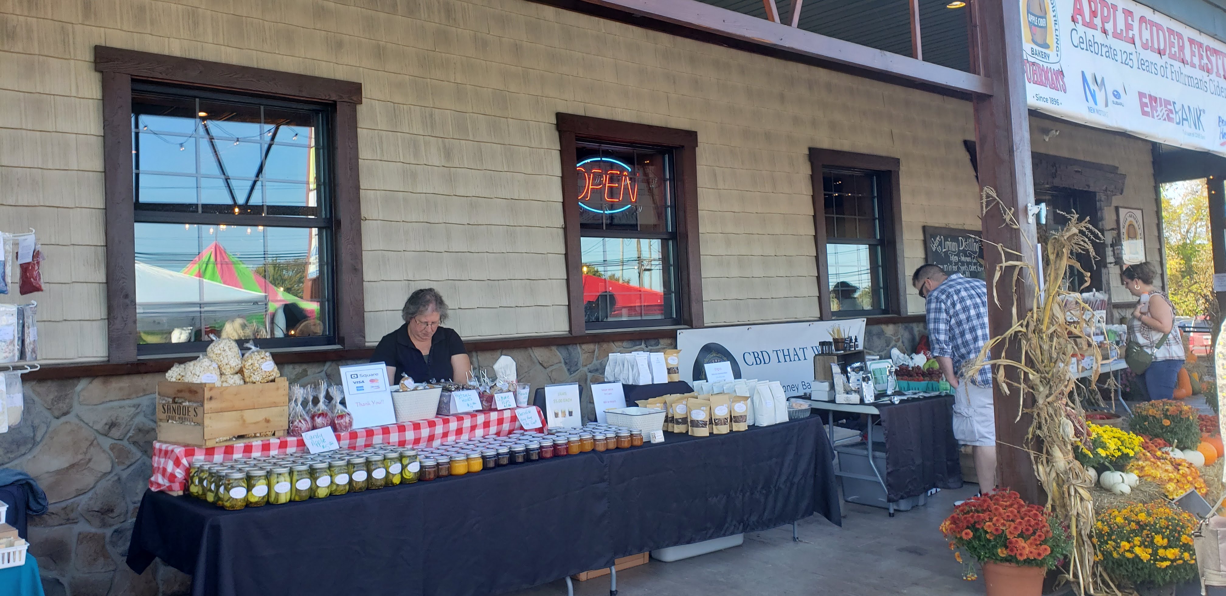 As you continue on, all of the local vendors are set up, with tents set up on either side of a wide walkway. There are many different booths to take a look at, including magnets, fall decor, coffee, canned apple butters, jewelry, and much, much more.