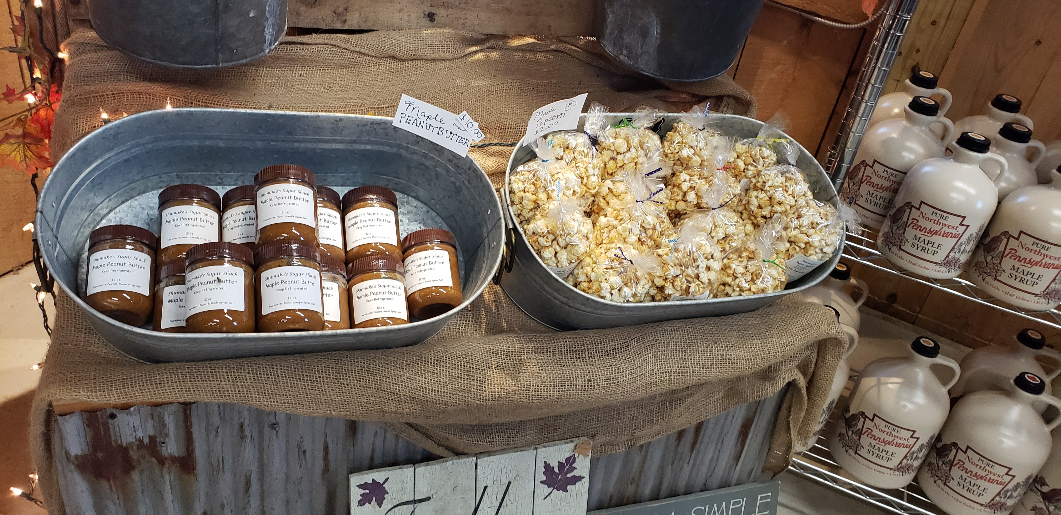Shumake’s Sugar Shack is located at 11401 Hilltop Road, Albion, PA 16401. It is a small wooden building. You can park right out front, and make your way into the store on the left side of the building if you’re facing it.