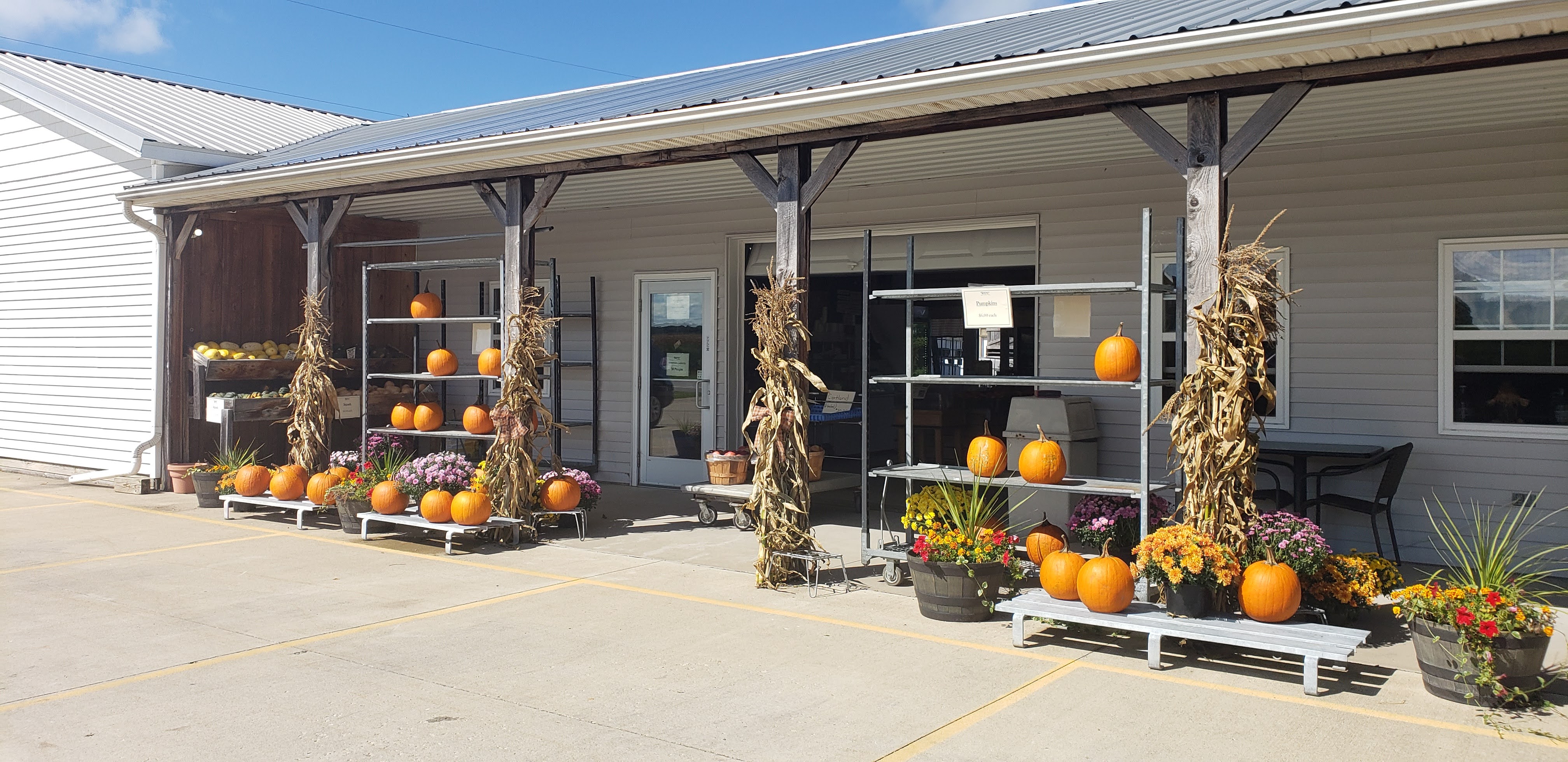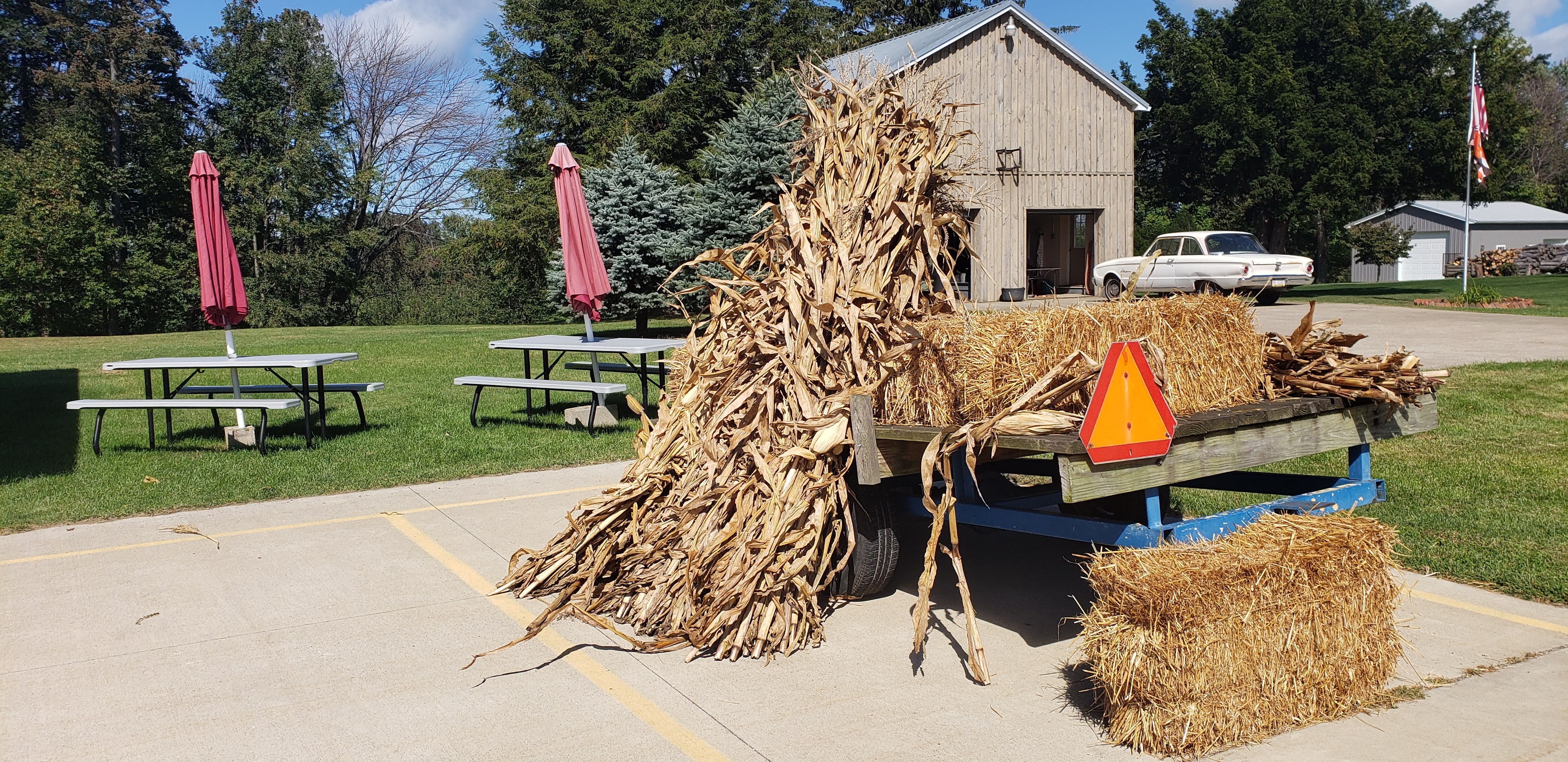 There are also some picnic tables to the right of the building. There is also a great little hay and corn stalk display, and we’re sure if you wanted to take some photos by it, you absolutely could!