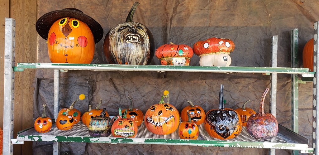 There are so many fun things to do at Pumpkintown! First and foremost, you can pick out some pumpkins! There is a large selection of pumpkins available, whether you want them untouched or painted. Several colors and sizes are available.