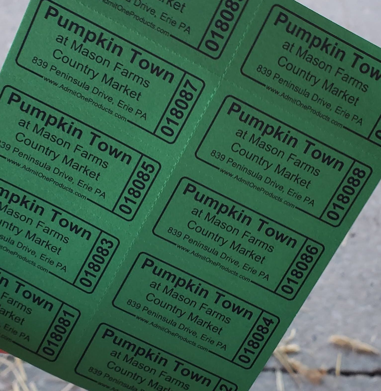Let’s talk Mason Farms Pumpkintown ticket prices. Each inflatable will cost you a certain amount of tickets to enjoy, or you can purchase an all day pass or season pass. $11 will get you a strip of 10 tickets. A Ride A Rama is $12 after 1:00 p.m., and $30 will get you a season pass! For us personally on this trip in particular, we chose the the 10 ticket strip, because we had limited time and multiple littles wanting to go on rides.