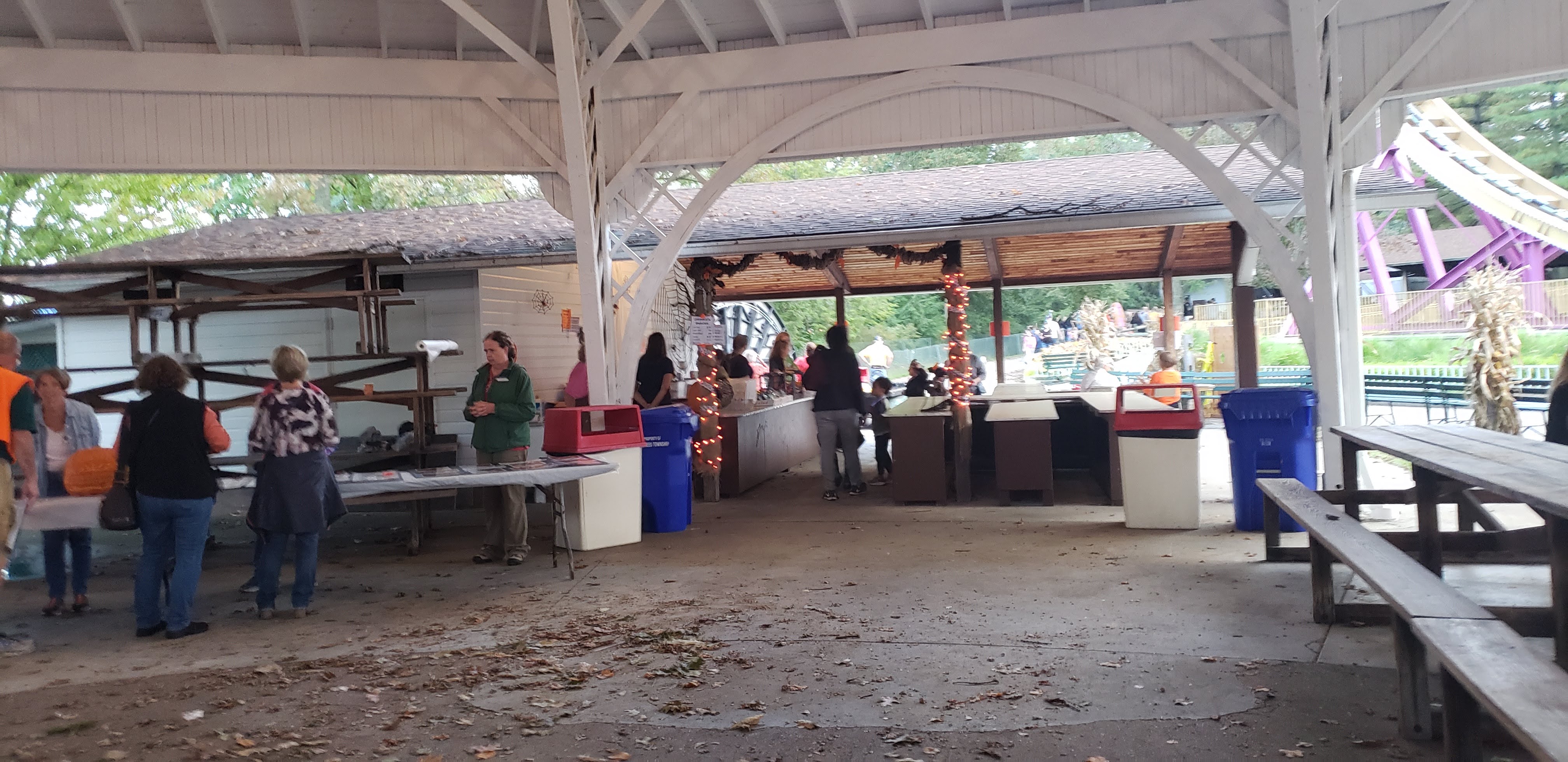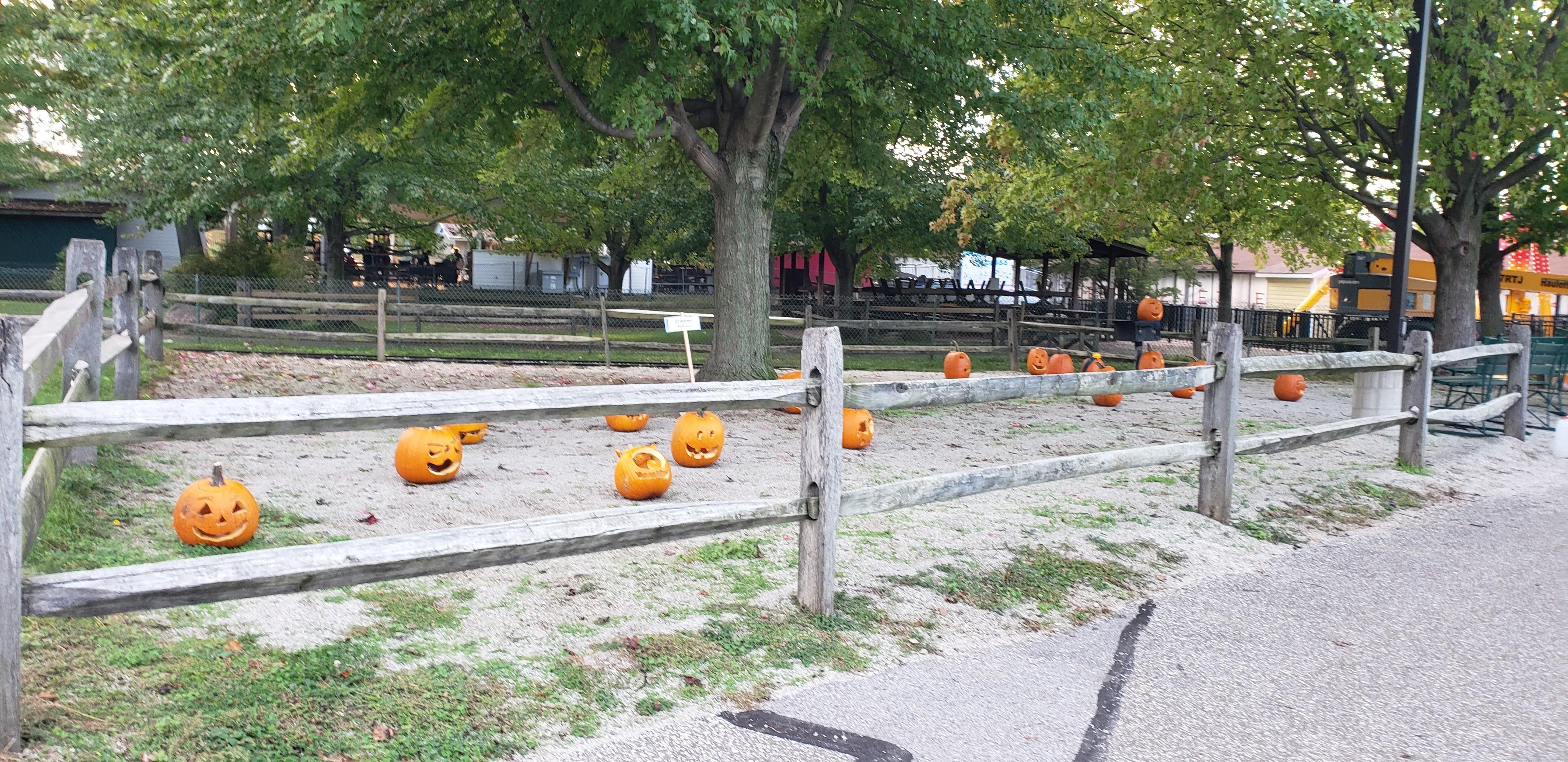 The Pumpkin Walk in Erie, PA takes place at Waldameer and Water World, and begins and ends at the Water World entrance. You’ll be walking in various areas throughout the park, but it’s not the park rides and entertainment that you’ll be paying attention to. You’re eyes will drift towards the ground and the tops of tables as you gaze at hundreds of pumpkins!