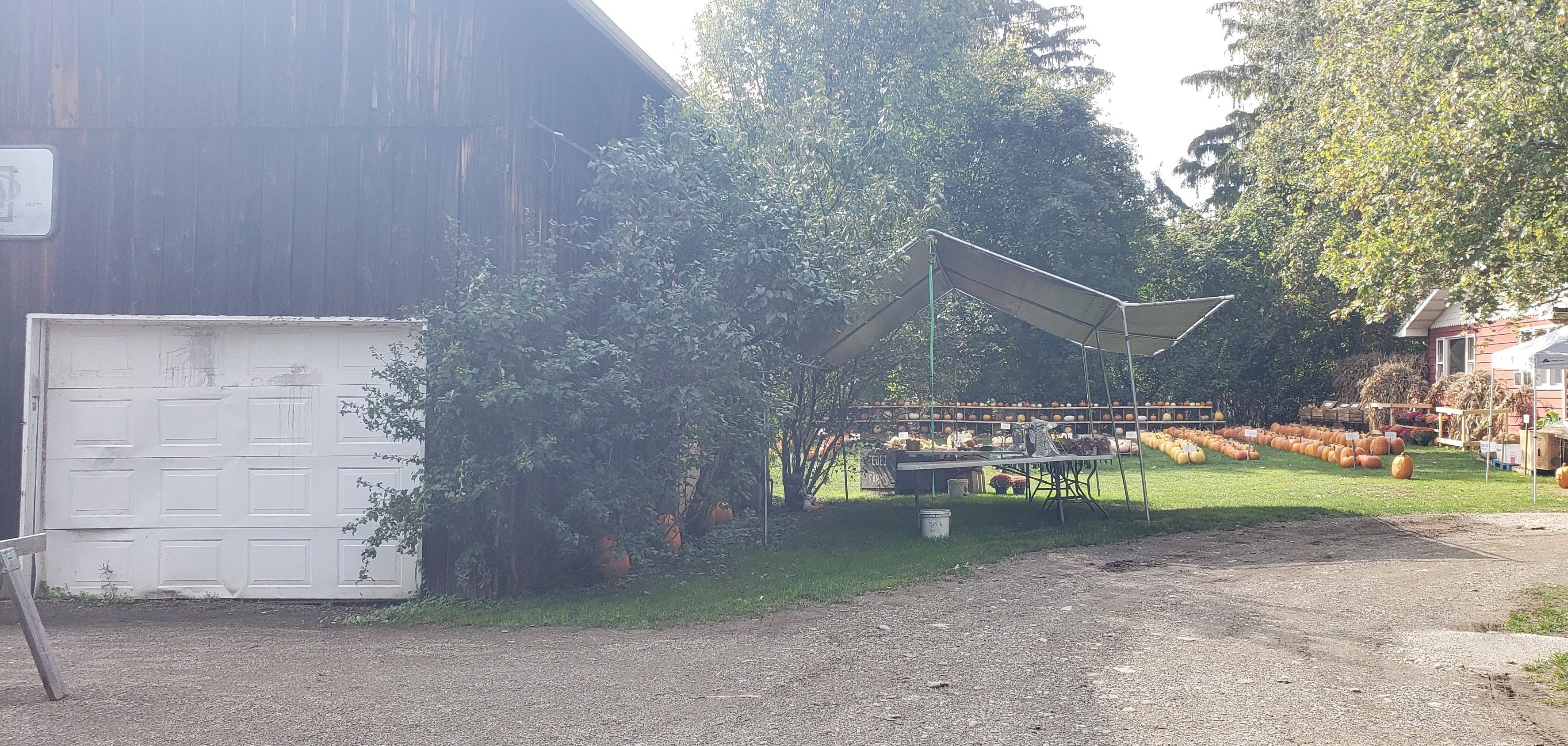 This farm stand is mostly outdoors with no cover. When you pull up to the property, you’ll park in their circle driveway. Walk towards all of the pumpkins, but check out the produce available to your left. The check out stand will be to your right; make sure to say hello to the people who run the stand!