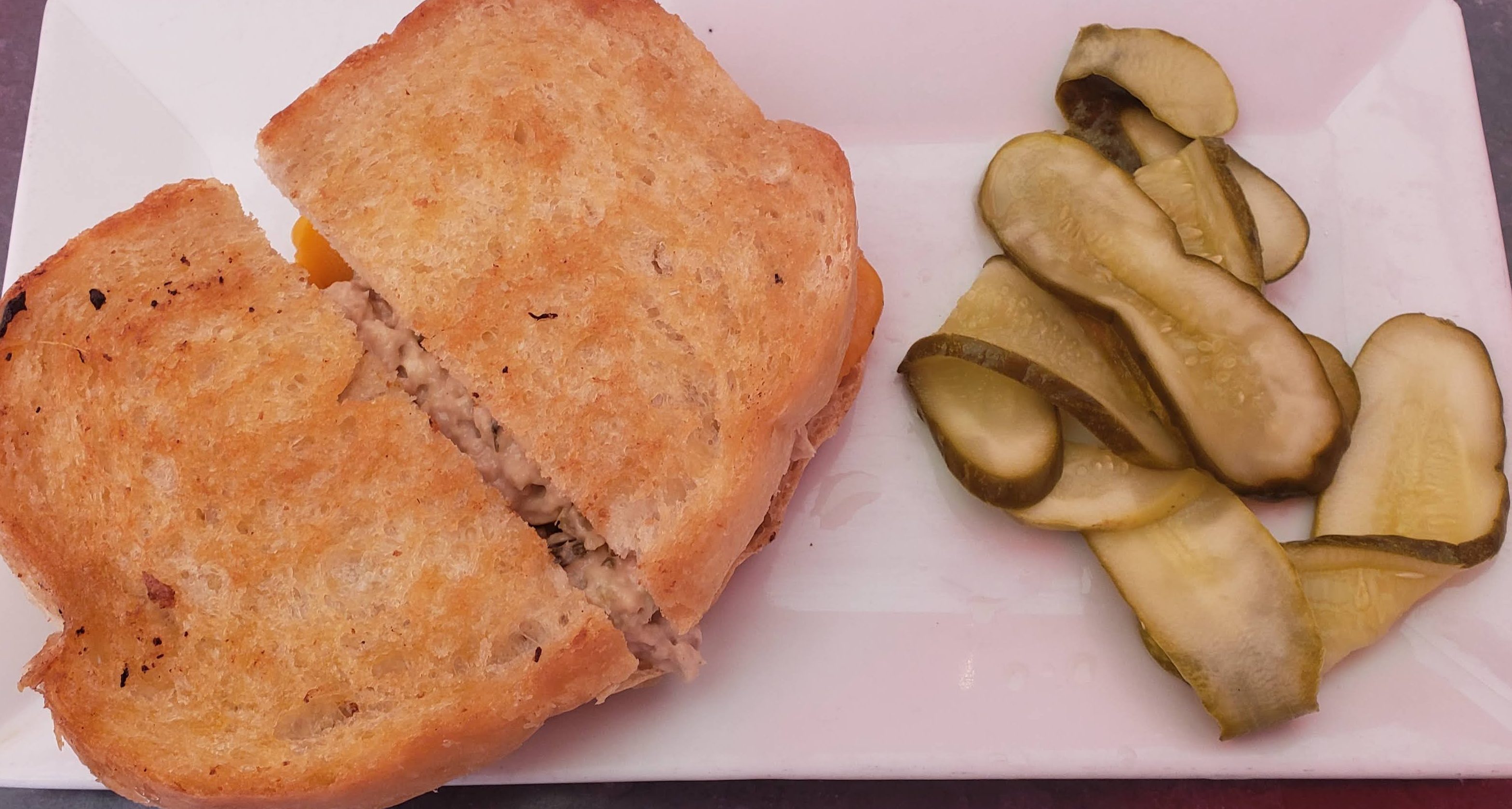 We also wanted to show you the food we got, to give you more ideas of what they serve at The Cakery. One of us got a Mushroom and Swiss Burger with Chips, and the other got a Tuna Melt with Pickles. Both were very good!