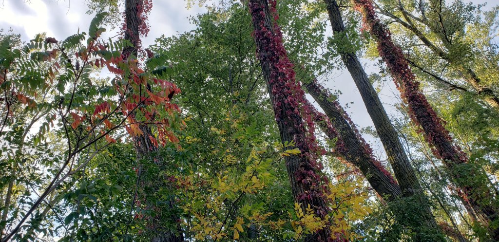 Several of the trees we noticed on our walk have just started their transition into Autumn’s vibrant colors.