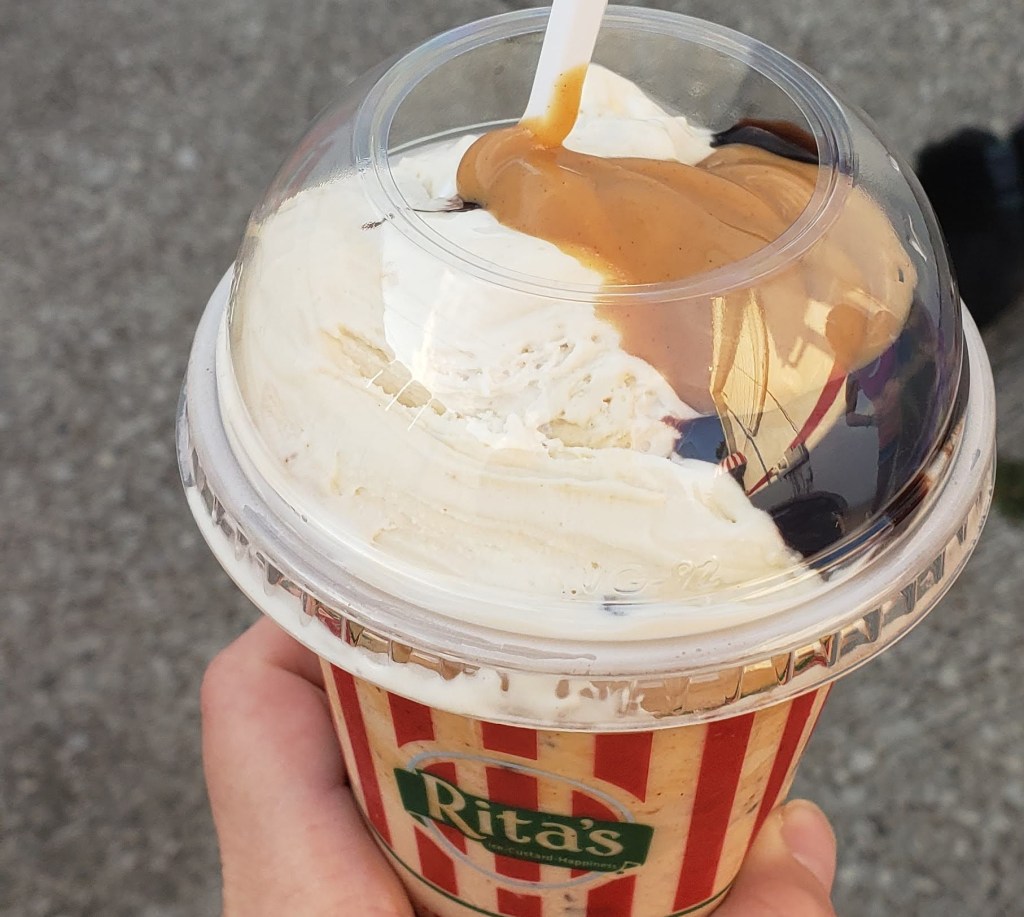 Rita’s Italian Ice and Frozen Custard is nothing short of delicious. When we go, some of us get the same thing every visit while others like to try new treats each time. A tried and true favorite of ours is the Misto Shake! We can also vouch for the Reese’s Peanut Butter Concrete! Try it with Salted Caramel Custard if it’s available. It may sound weird, but you won’t regret it! The classic Gelati, a mix of Italian Ice and Frozen Custard, is also a fan favorite at Rita’s.