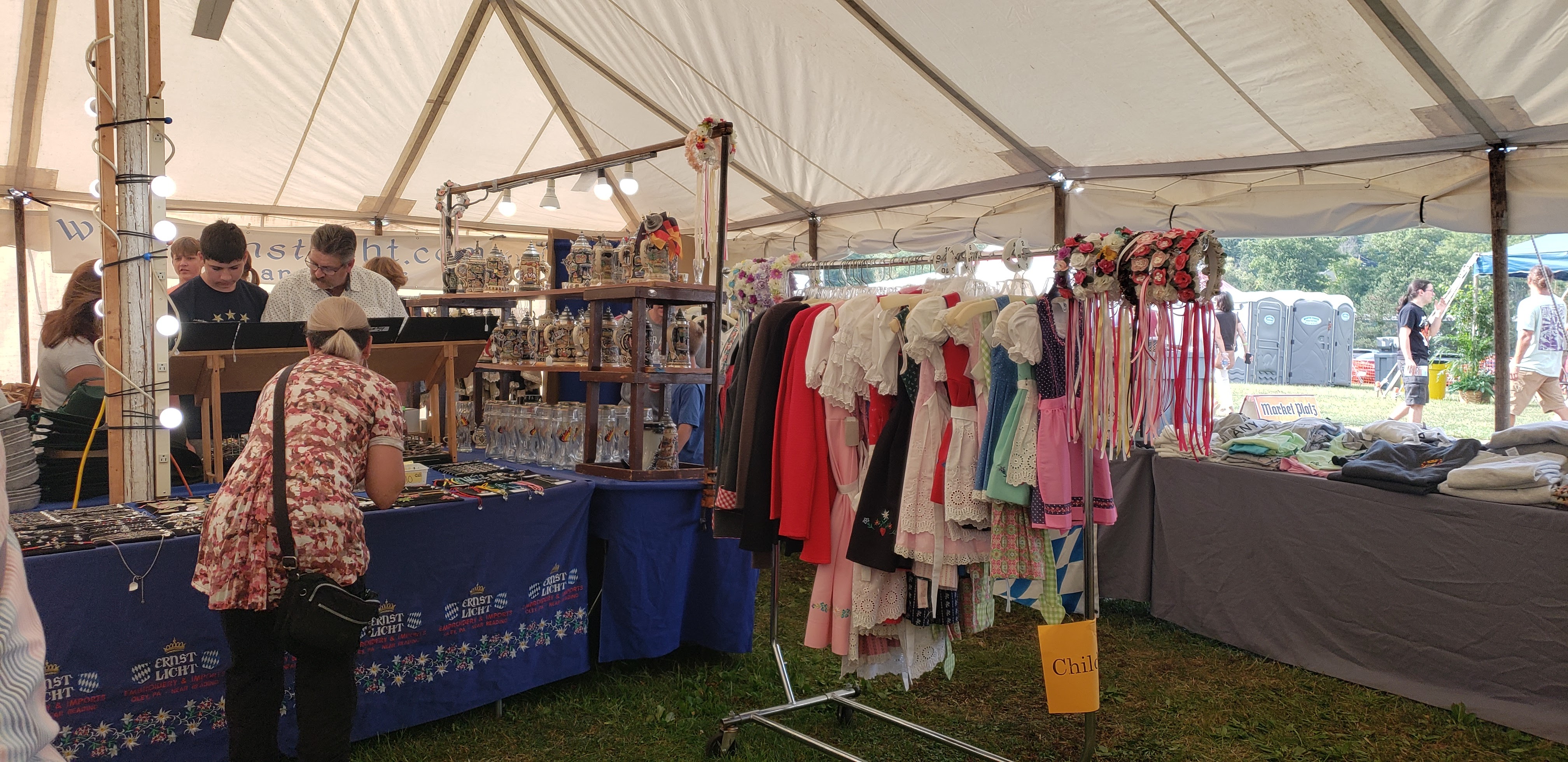 This is a family event, so there are plenty of activities to keep everyone busy! Balloon animals were made, faces were painted, and there were some swings toward the back of the festival grounds. Lemonade and funnel cakes were also available, and we may have gone through that line one or two times for our kiddos! There’s also a gift shop located in the main walkway of the festival, and it is under a tent. They have a lot of cool German clothes, hats, and other ethnic things, as well as dachshund socks and baltic amber jewelry! There’s also live music to enjoy, including The Mad Bavarian.